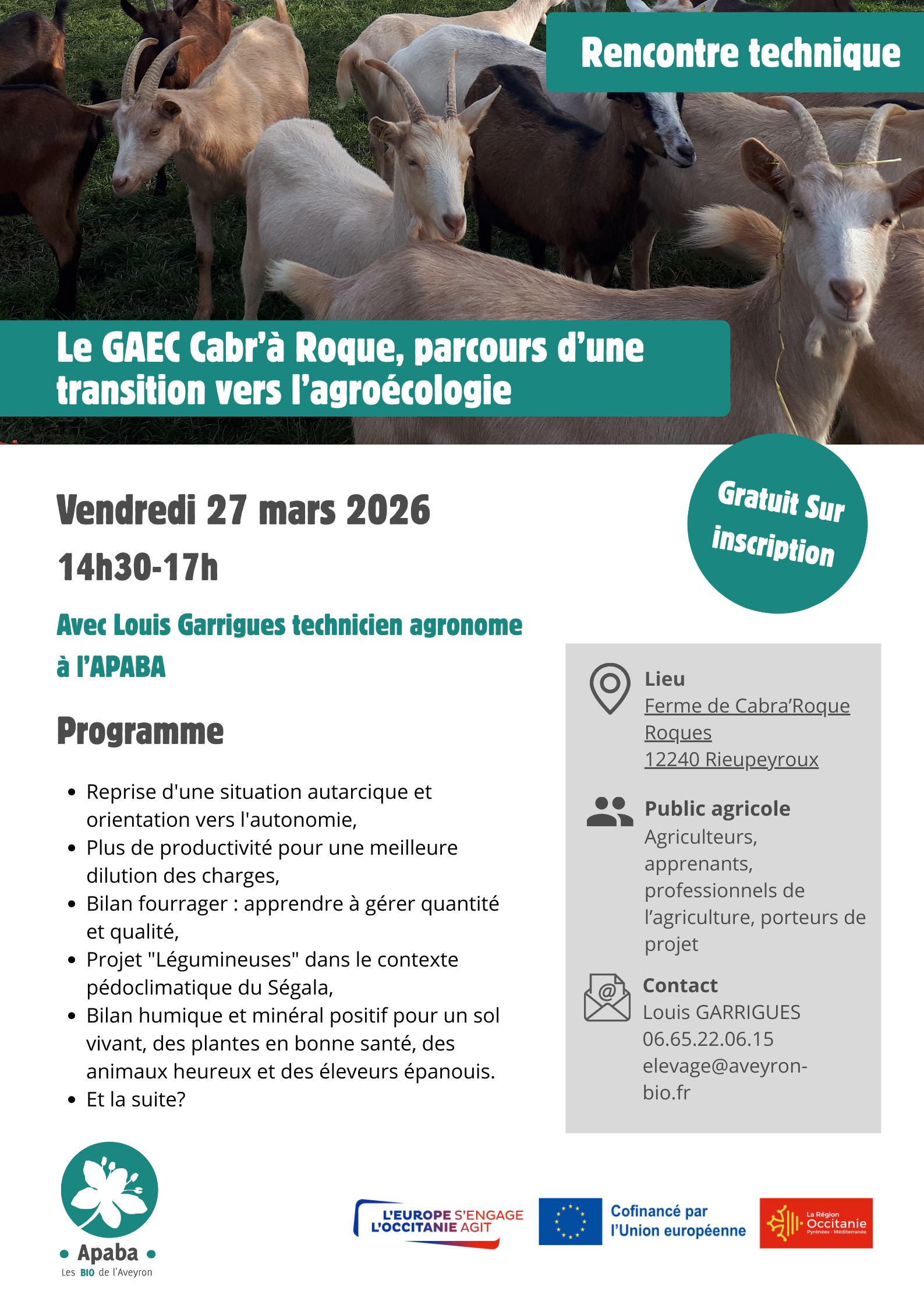 Non classé23 février 2026 Rencontre technique : Le GAEC Cabra’Roque, parcours d’une transition vers l’agroécologie